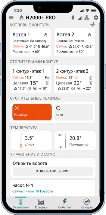 Автоматизирует рутинные дела: включает теплые полы, интерьерное освещение, подогревает воду в бассейне или сауне дистанционно по расписанию или по событию