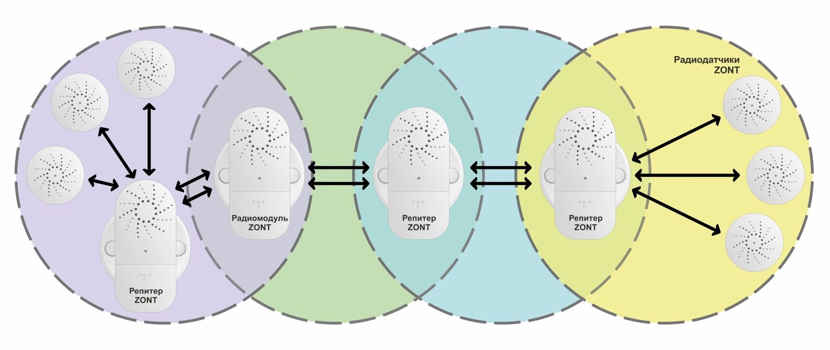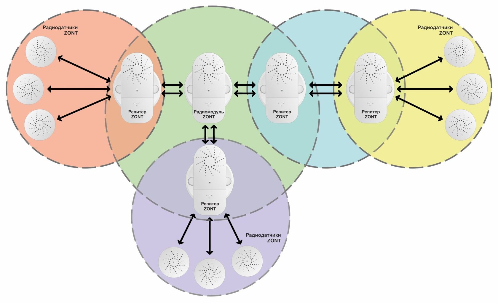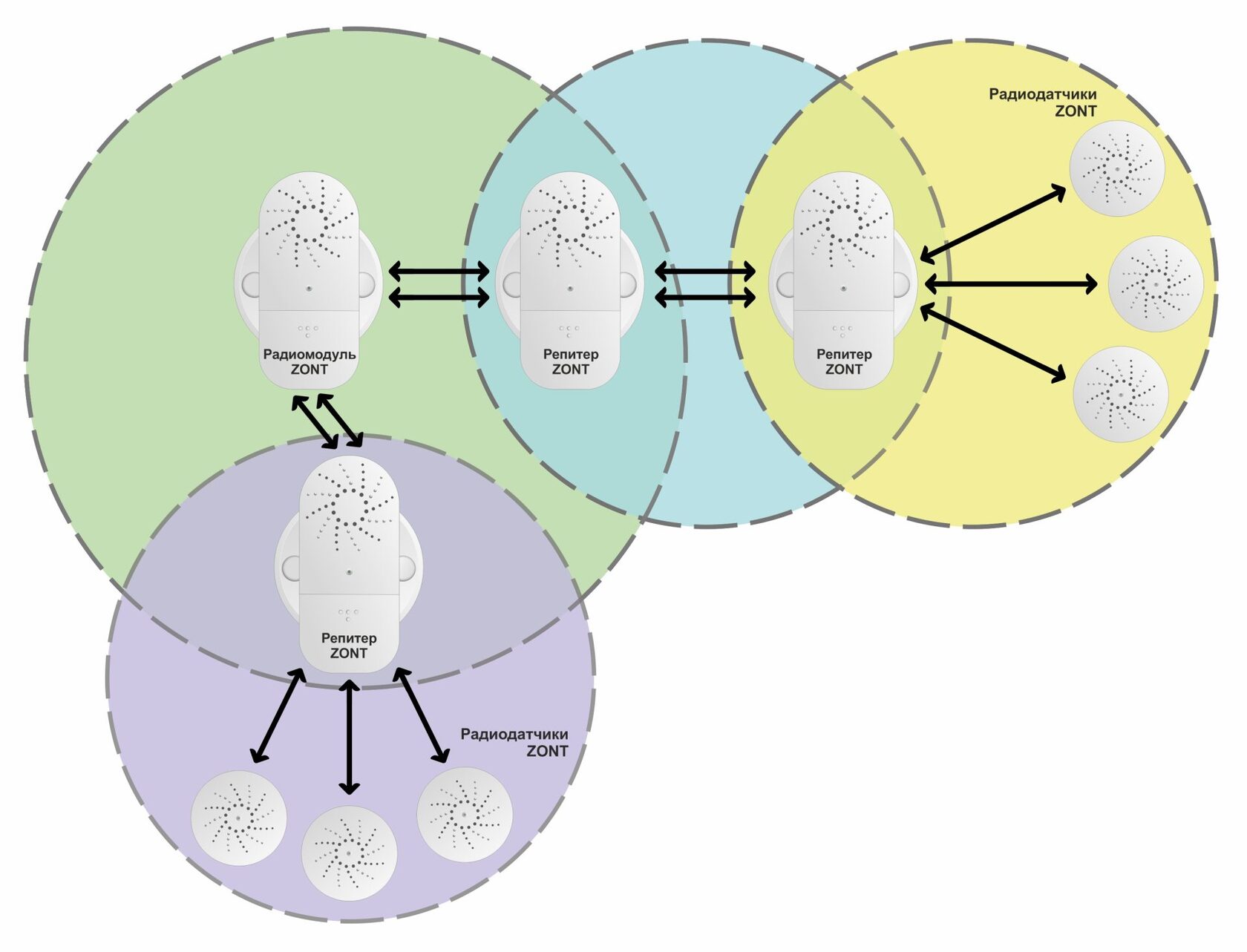 К одному радиомодулю допускается подключение до 5 Репитеров.